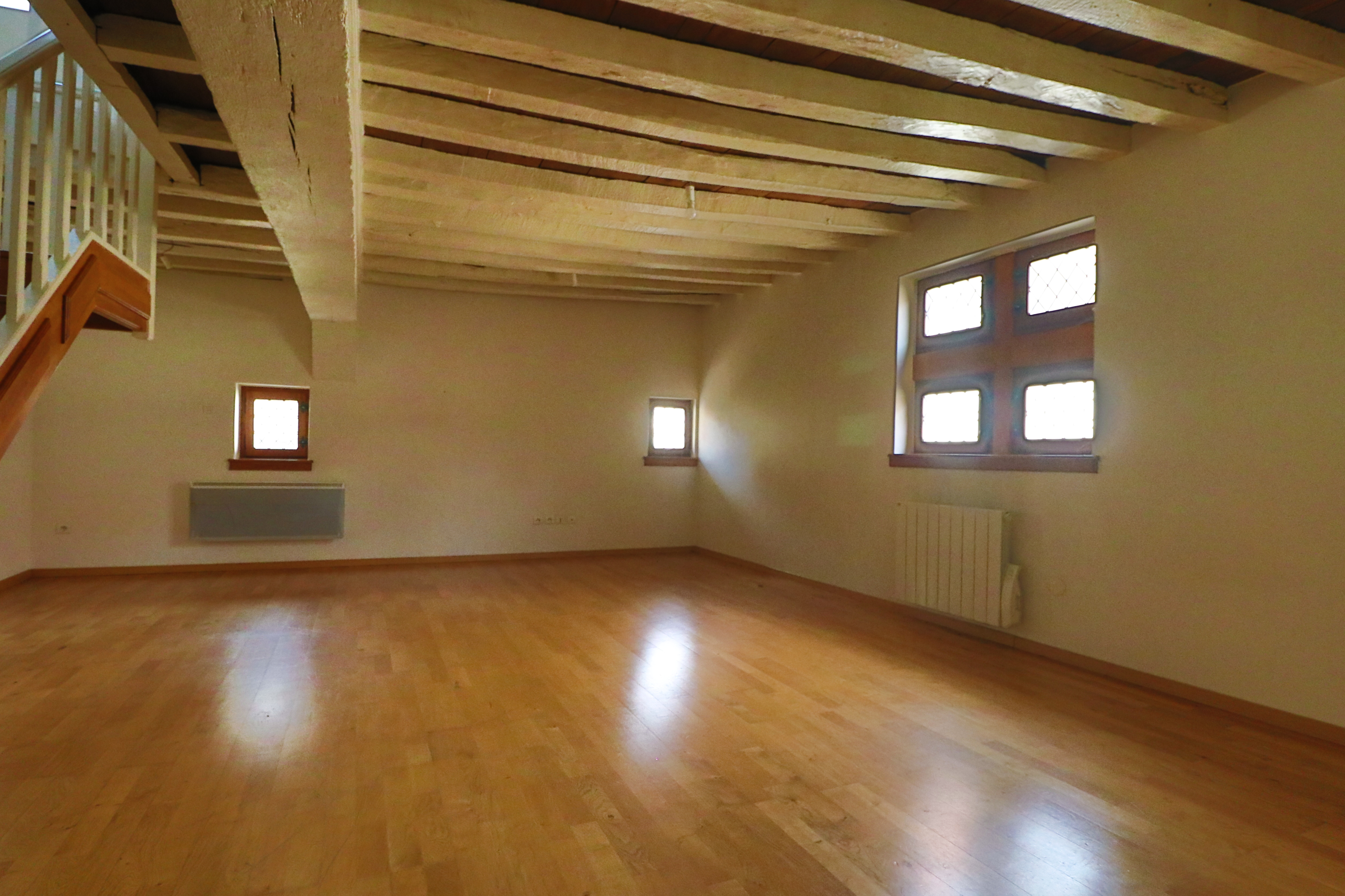 SEURRE Centre ville dans un immeuble classé au patrimoine des bâtiments de France, voici un appartement en duplex au dernier étage bénéficiant d'une surface habitable confortable de 99.60 m², un séjour, une grande cuisine, une salle de bains, un WC au 1er niveau, 2 chambres, un coin douche avec WC à l'étage. Un petit balcon devant l'appartement permet de mettre une table pour un moment de détente avec vue sur la structure bois et briques magnifiquement mis en valeur au moment de la rénovation.