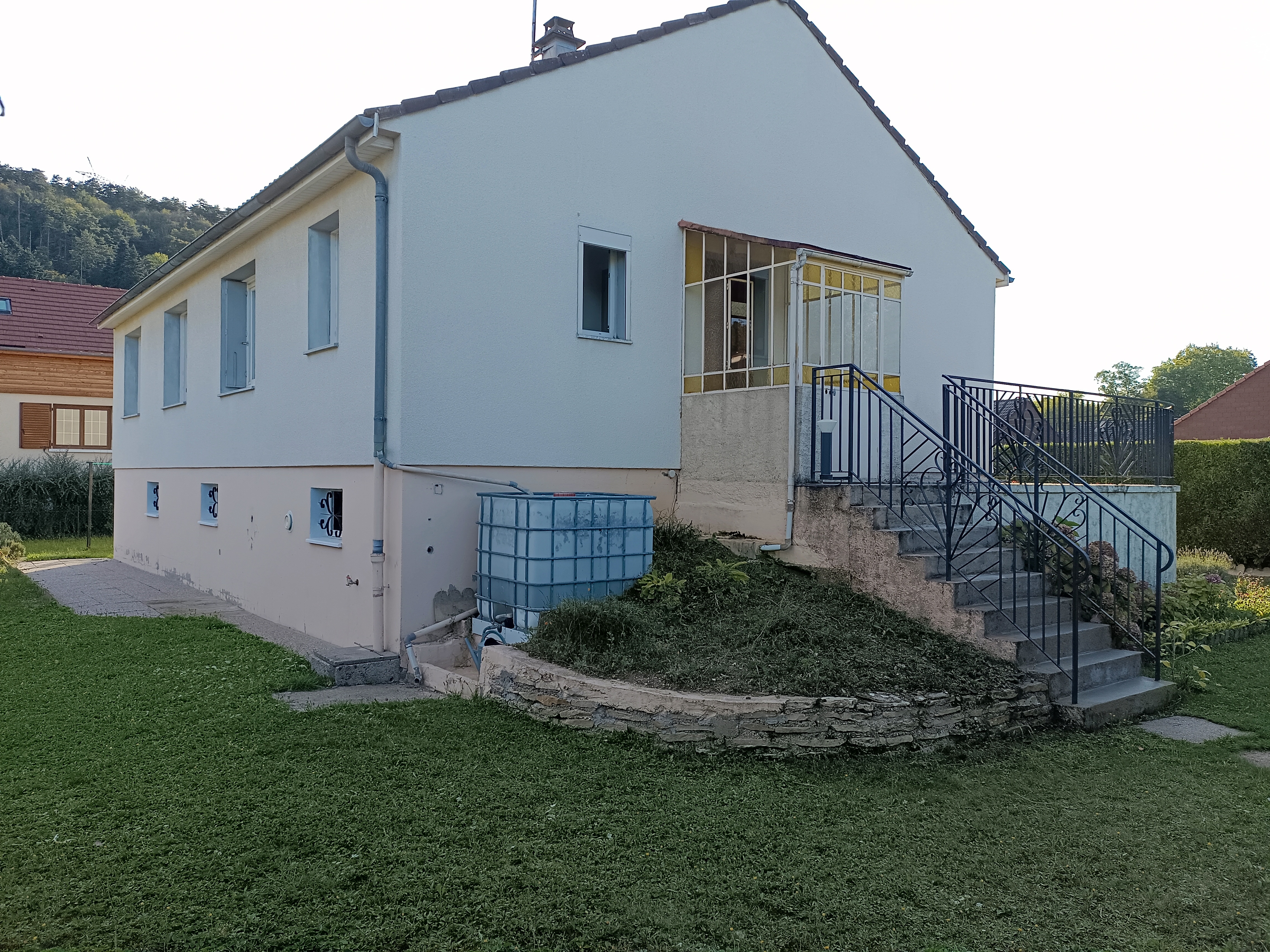 Le sous-sol se compose d'un garage avec coin évier, d'un établi, d'une cave, d'une buanderie avec adoucisseur d'eau, d'un WC.