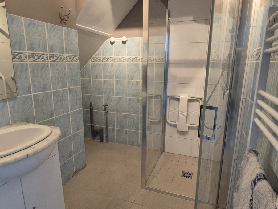 A l'étage, vous trouverez un palier, deux chambres dont une avec jolie vue sur la cote, un WC.